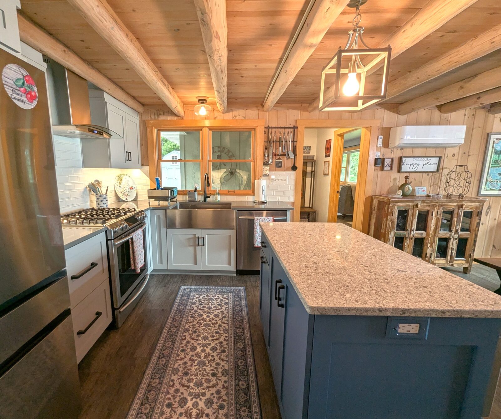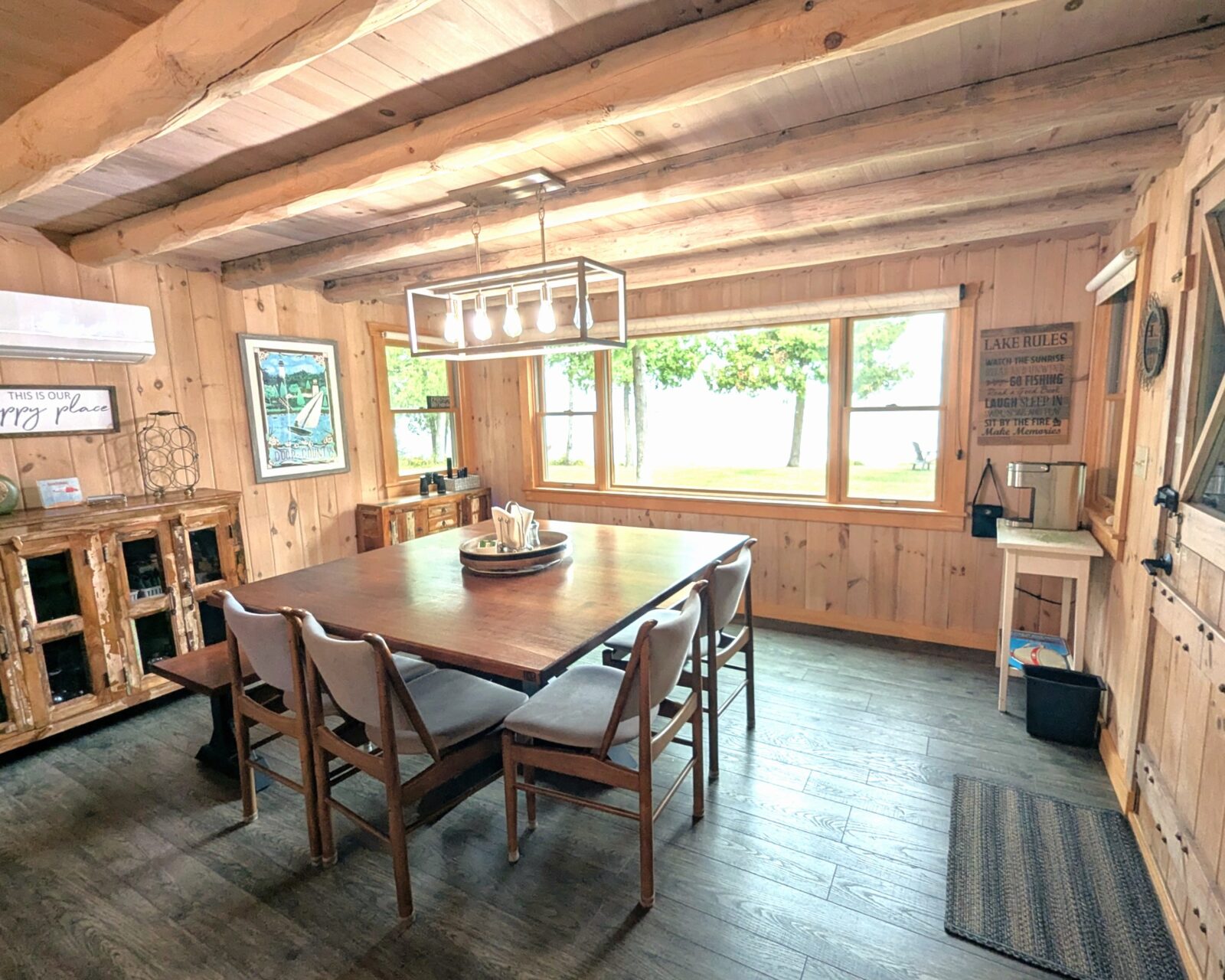 Escape to this stunning waterfront home that beautifully blends modern comfort with rustic charm. The spacious living room showcases impressive wood beams and cozy gathering spaces. Charming touches throughout create a warm and inviting atmosphere, perfect for relaxing and enjoying family time. Large windows frame sweeping water views from nearly every room, offering a serene backdrop morning to night. With generously sized bedrooms, you’ll have plenty of room to relax after a day of exploring. Just a short drive into Sister Bay, enjoy restaurants, shopping, and local attractions—all while returning to the peace and privacy of your own waterfront retreat.